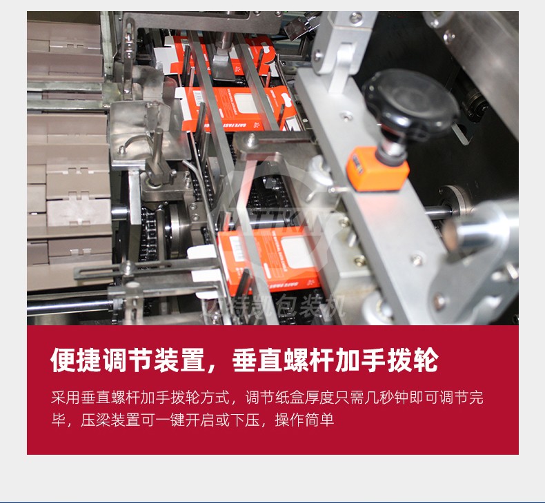 邁特凱月餅裝盒機借助于PLC控制系統和步進電機精確定位,利用氣缸帶動真空吸盤手、推料手臂、折盒軌道等組成一個自動開盒、裝盒、封盒系統。提高了生產效率,節約大量的勞動力,降低企業成本,使企業的自動化程度再次提升,帶來較高的經濟效益。解決很多月餅生產廠家人手短缺、工人易疲勞、勞動強度大、手指易受損傷,直接接觸食品,帶來食品安全衛生問題。